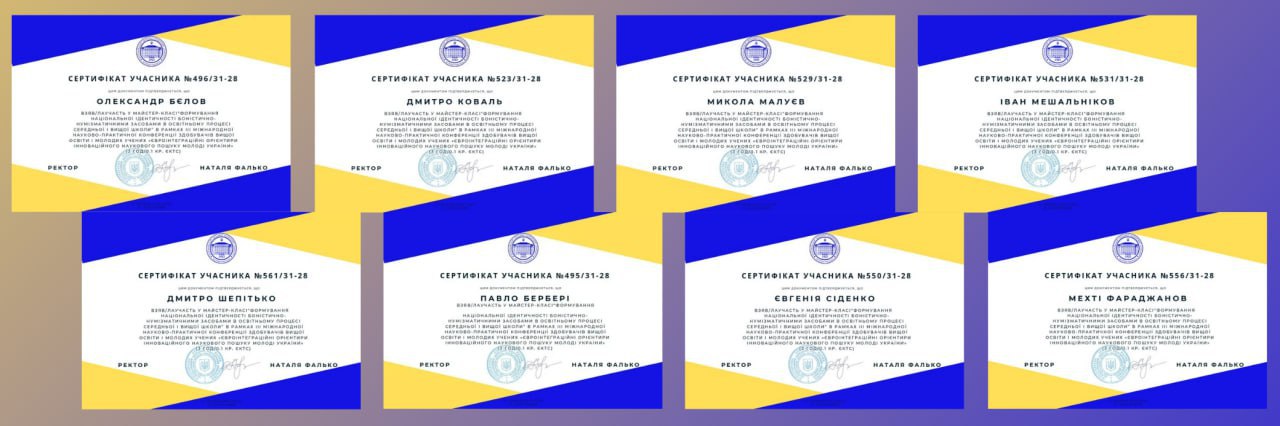 27 червня 2025 року члени студентського наукового гуртка «Всесвіт» кафедри географії та туризму, здобувачі спеціальності 014.07 Середня освіта (Географія) першого (бакалаврського) рівня вищої освіти – Олександр Бєлов, Дмитро Коваль, Микола Малуєв, Іван Мешальніков, Дмитро Шепітько і здобувачі другого (магістерського) рівня вищої освіти – Павло Бербері, Євгенія Сіденко, Мехті Фараджов брали онлайн-участь у майстер-класі «Формування національної ідентичності боністично-нумізматичними засобами в освітньому процесі середньої і вищої школи» в рамках проведення ІІІ Міжнародної науково-практичної конференції здобувачів вищої освіти і молодих учених «Євроінтеграційні орієнтири інноваційного наукового пошуку молоді України» (26-27 червня 2025 року, Мелітопольський державний педагогічний університет імені Богдана Хмельницького).
