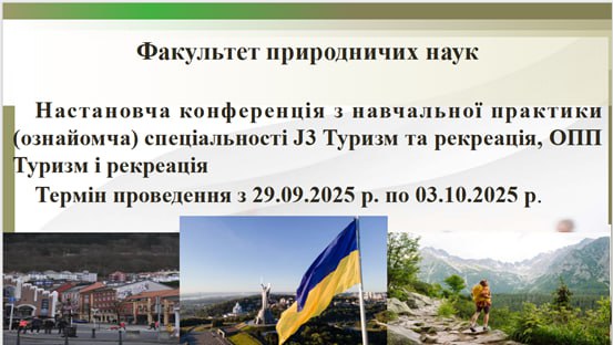 НАСТАНОВЧА КОНФЕРЕНЦІЯ З ПРОХОДЖЕННЯ НАВЧАЛЬНОЇ ПРАКТИКИ (ОЗНАЙОМЧОЇ) ДЛЯ ЗДОБУВАЧІВ СПЕЦІАЛЬНОСТІ J3 ТУРИЗМ ТА РЕКРЕАЦІЯ ПЕРШОГО (БАКАЛАВРСЬКОГО) РІВНЯ ВИЩОЇ ОСВІТИ