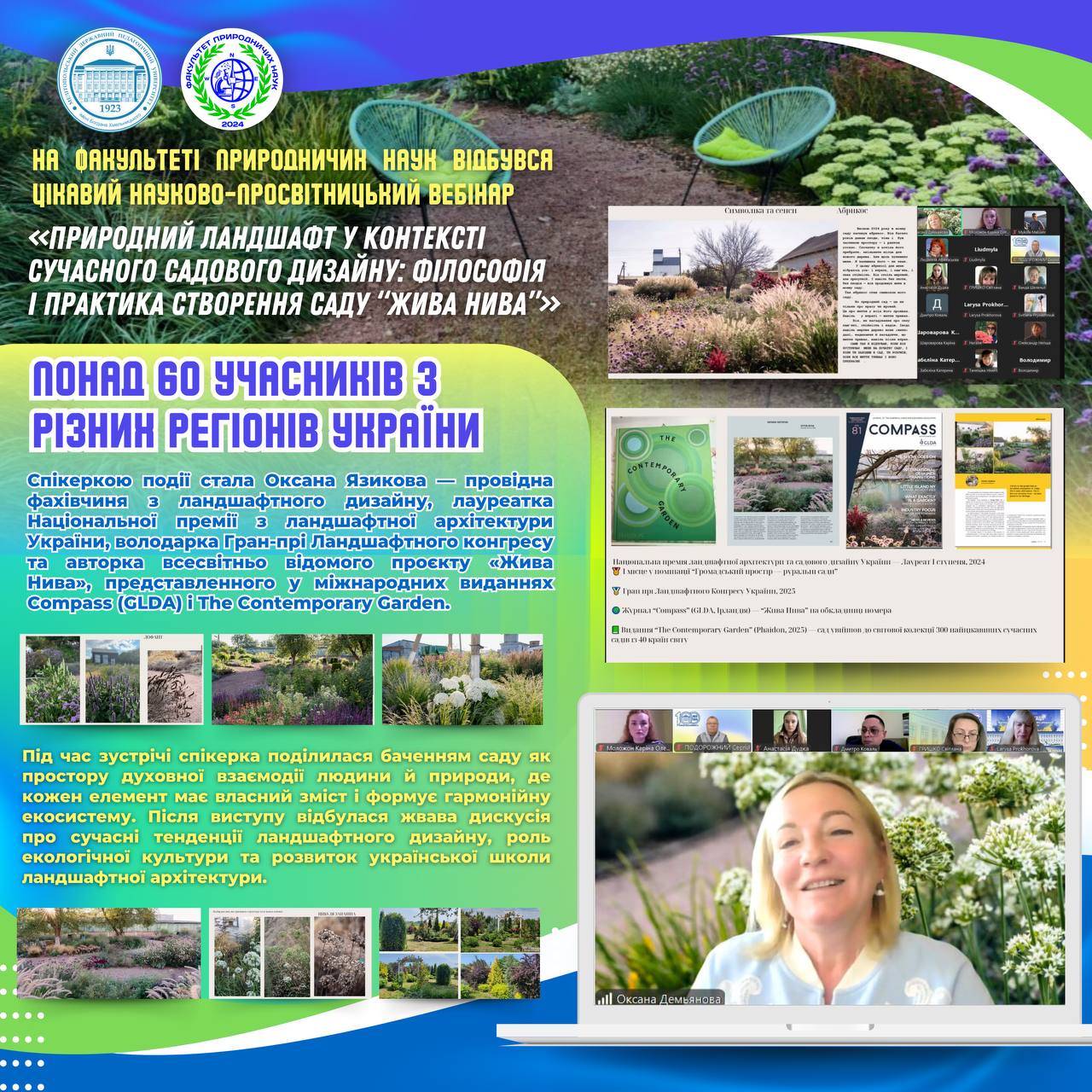 📆🥳 29 жовтня на факультеті природничих наук відбувся натхненний науково-просвітницький вебінар, що відкрив нову сторінку у філософії ландшафтного мислення.