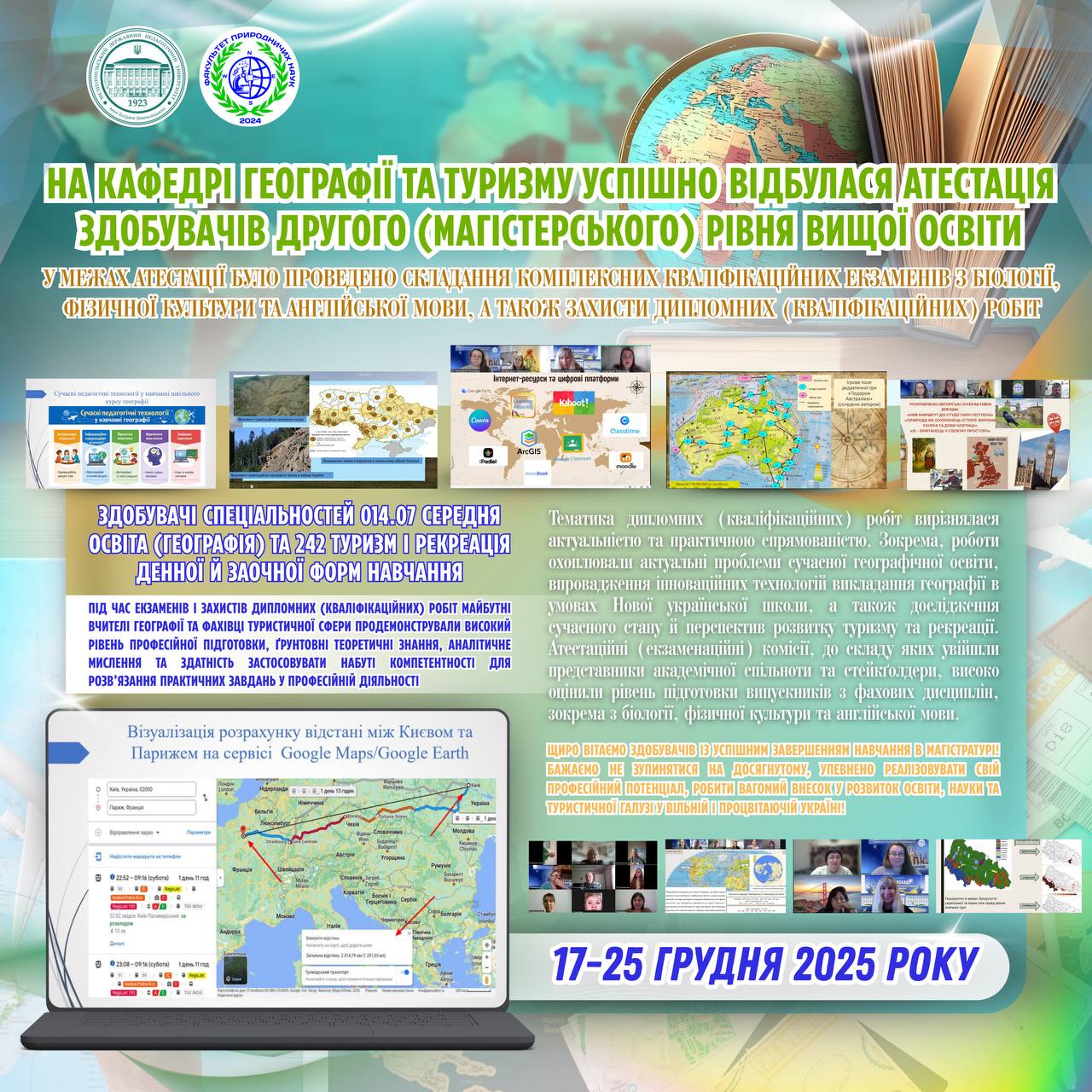 🇺🇦🌍 НА КАФЕДРІ ГЕОГРАФІЇ ТА ТУРИЗМУ УСПІШНО ВІДБУЛАСЯ АТЕСТАЦІЯ ЗДОБУВАЧІВ ДРУГОГО (МАГІСТЕРСЬКОГО) РІВНЯ ВИЩОЇ ОСВІТИ