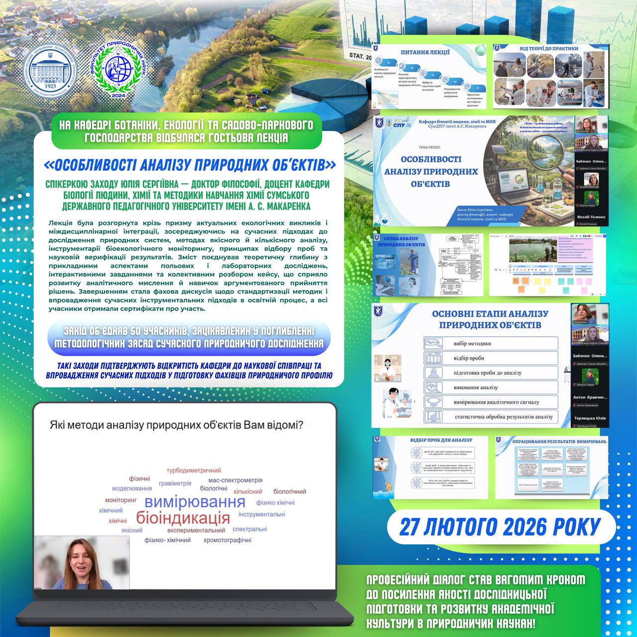 🔬🇺🇦 ГОСТЬОВА ЛЕКЦІЯ «ОСОБЛИВОСТІ АНАЛІЗУ ПРИРОДНИХ ОБ’ЄКТІВ»: ПРОФЕСІЙНИЙ ДІАЛОГ, ПРАКТИКА ТА НАУКОВА ДИСКУСІЯ