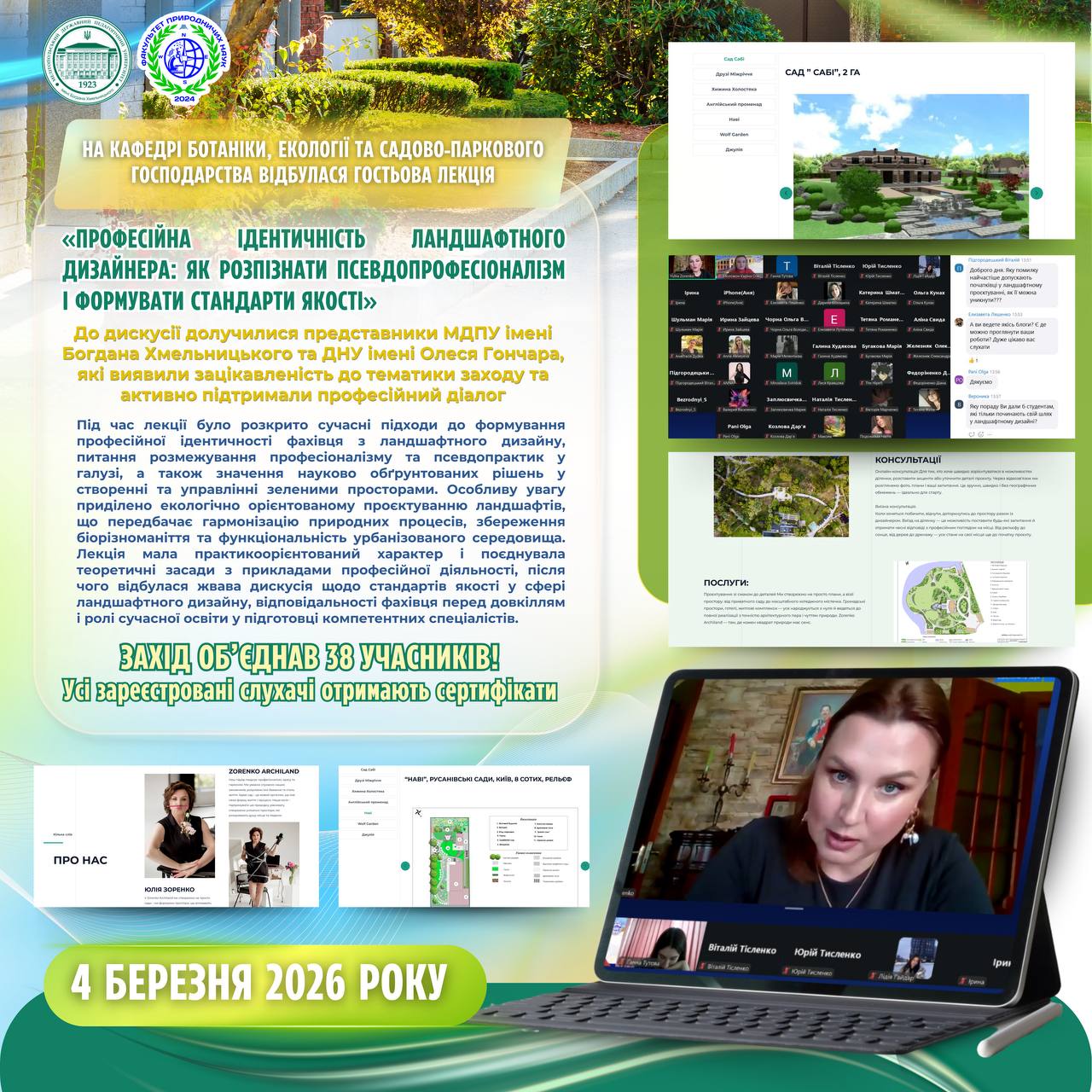 🔬🌿 ГОСТЬОВА ЛЕКЦІЯ «ПРОФЕСІЙНА ІДЕНТИЧНІСТЬ ЛАНДШАФТНОГО ДИЗАЙНЕРА»: АКТУАЛЬНІ СЕНСИ ПРОФЕСІЇ, ЕКОЛОГІЧНИЙ ПІДХІД ТА ЖВАВА ДИСКУСІЯ