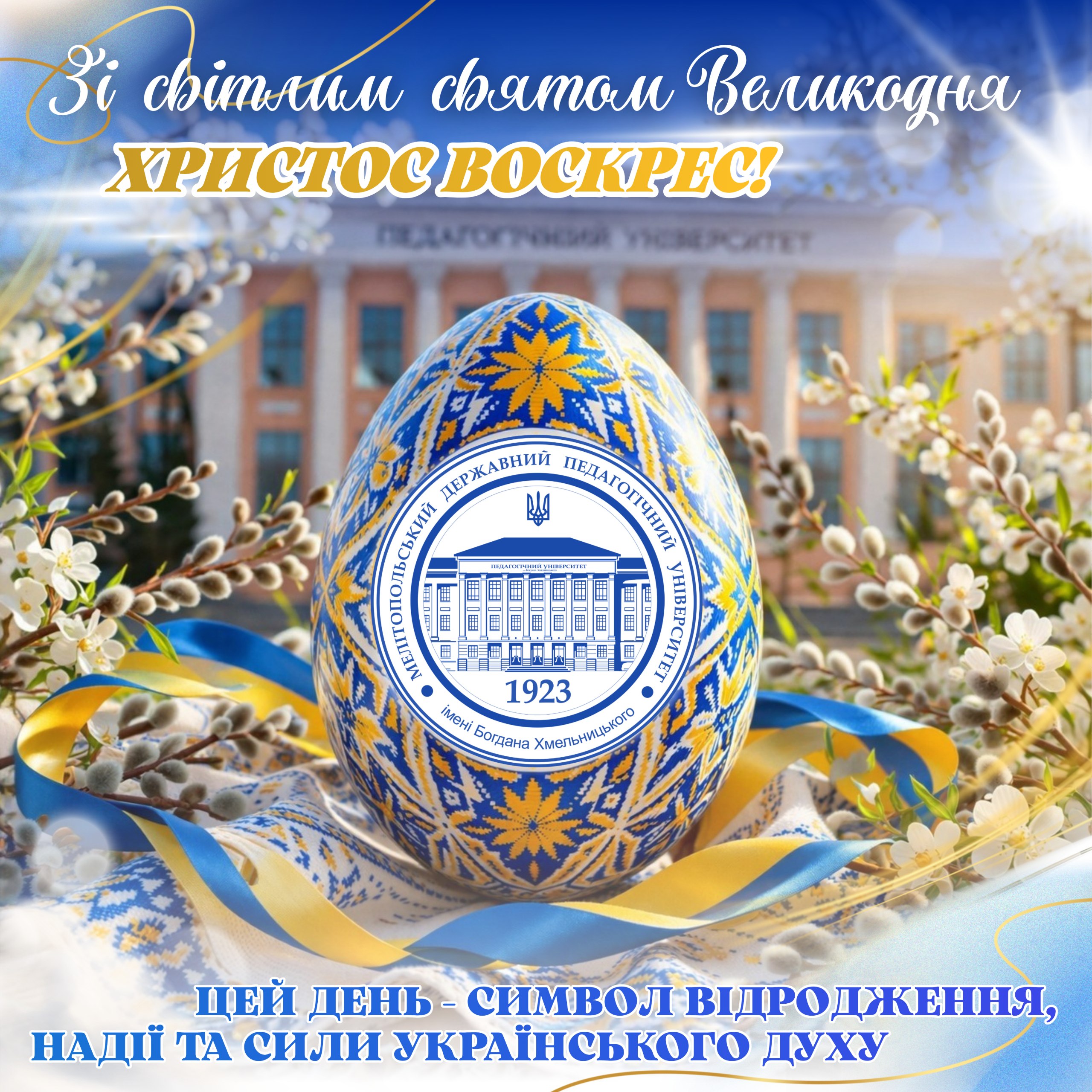 🌅 У дні, коли світ наповнюється особливою тишею і внутрішнім змістом, Великдень приходить не лише як свято, а як стан — відновлення, віри й глибокого людського тепла. Родина МДПУ імені Богдана Хмельницького щиро вітає вас із цим світлим і сенсовним днем.