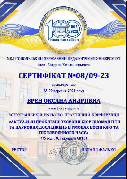 Здобутки здобувачів Факультет природничих наук > Кафедра ботаніки, екології та садово-паркового господарства > Здобутки здобувачів